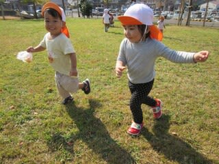 かけっこをしたり、葉っぱを集めたり、自然の中で楽しく遊んできました。