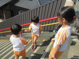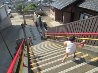 日々の登降園で自分の足でしっかりと登るこの階段。