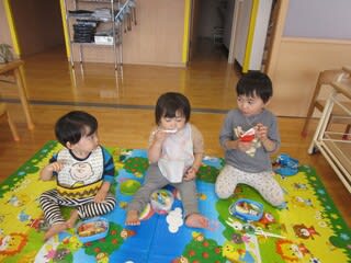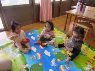 お兄さん、お姉さんが園外保育へ出かけている間、いつもとちょっぴり雰囲気を変えてのお弁当(^^♪