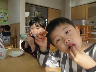 小正月の期間である今日は、おやつに小豆粥を頂きました。 朔日参りで赤飯を頂くこともあってか、あっという間に完食の子どもたちでした(^^) なかには「おかわりー」と言ってくれたお友だちもいましたよ♬ …