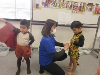 出番を終えたお友達は、広いお部屋で遊びながら待ちました。