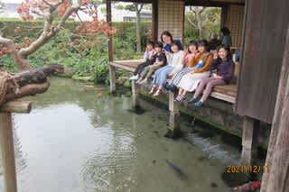 温かい美味しいお茶をいただき、縁側では鯉を見たりして子どもたちのテンションもup