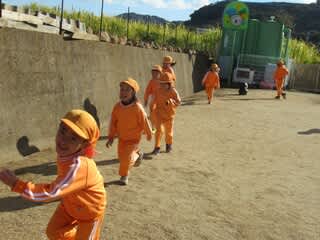 園庭へ出ると、まず初めに一列に並んで走っています