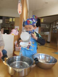 26日支援センターでおてがるクッキングがありました。 今回は参加者も多く、 お母さんたちが料理中子どもたちは 仲良く遊んでいました(^^) レシピを見ながら説明を受けながら 手順良く進んでいます。 今回は、かぼちゃドーナ…