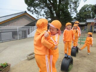 園庭遊びの中で、子どもたちに人気のタイヤ飛び♫