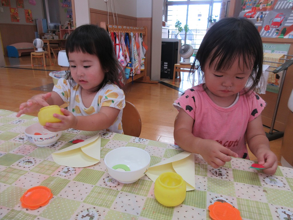 好きな果物をどんどん入れていく子、クリームたっぷりな子