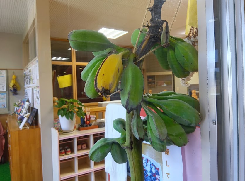 先日、同法人施設の職員より、モンキーバナナを枝ごと頂きました。