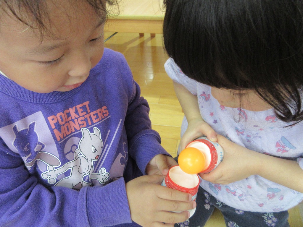 カップとカップを近づけて、そーっと慎重にピンポン玉を「おとなりへ」いざ勝負となると、勝ちたい思いから焦りも加わり、