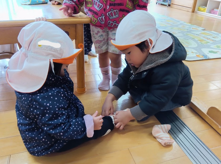 「お外に行くよ~」の声に、身支度を整え、自分の準備が終わると