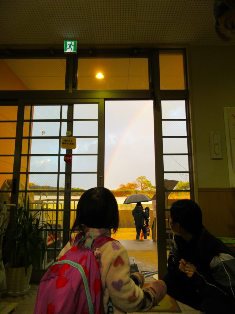 お迎えの時間帯と重なり大好きなママとも、きれいだね~。と虹を眺め、