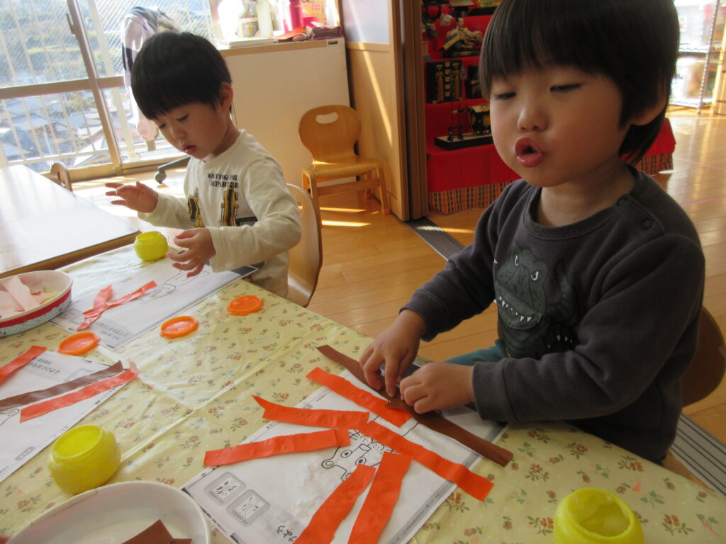 ハサミを使って折り紙をチョキチョキ!