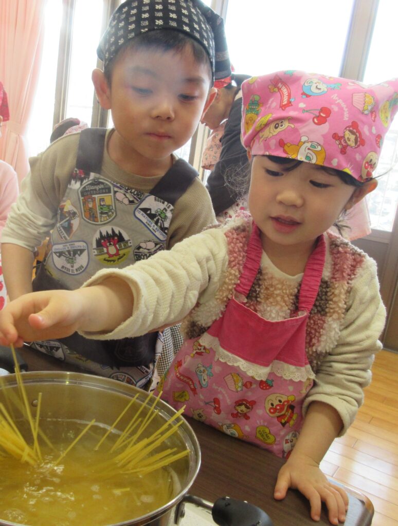 3歳以上児クラスのクッキングの様子をお伝えします。