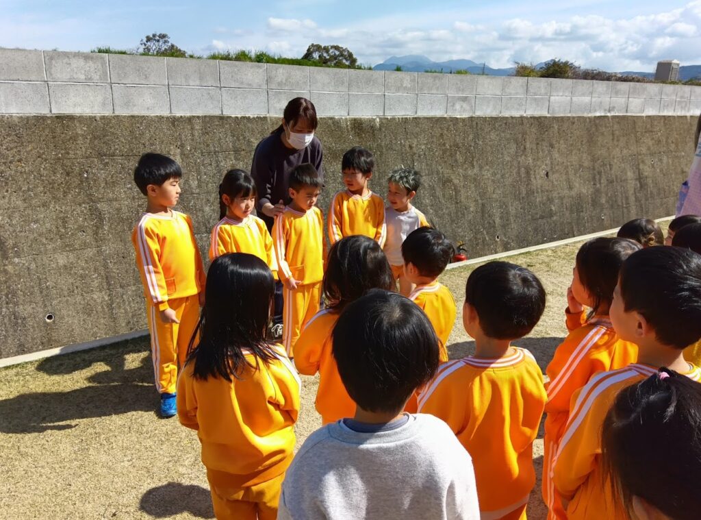 5歳児さんは保育園での最後の避難訓練、みんなの前で