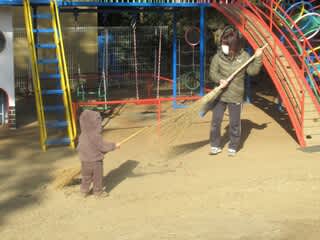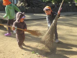 自分も一緒にやる~!とやや小さめのほうきを手にして、