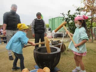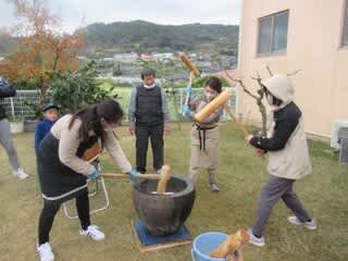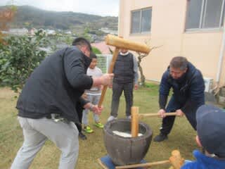 昨日は、天気の心配はあったものの、令和元年度以来のもちつき会を行いました。