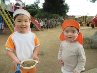 「あったよ」「ここにもあるよ」と、言葉を交わしながらた~くさん拾って満足な子どもたちでした(^^♪