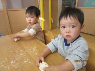 昨日は小麦粉粘土を使って、もちつき会に向けて
