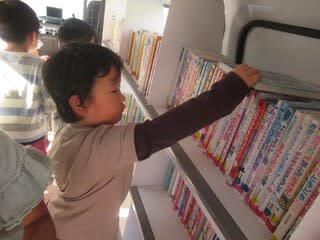 移動図書は、子どもたちが楽しみにしていることの一つ。