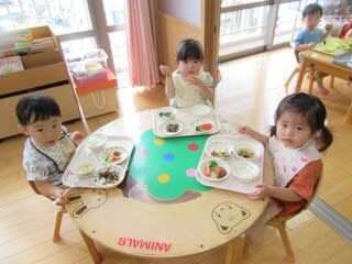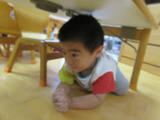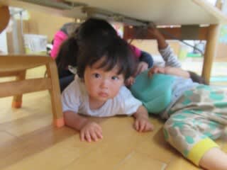 先日のおやつ前、机の下には子どもが、、、かくれんぼでもして遊んでいるのかな?と見えるかもしれませんが、