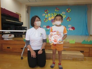 お友達からお祝いされ、にっこり(^^)堂々と受け答えする姿に成長を感じました。
