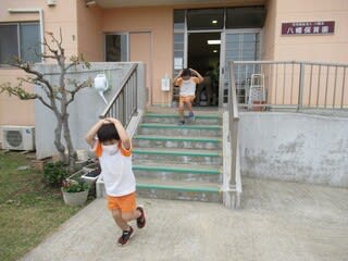 揺れが収まったら、素早く靴を履いて園庭へ!!
