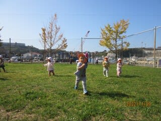 自分の足でしっかり歩いて、到着した場所は、大きなグラウンド。