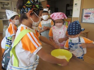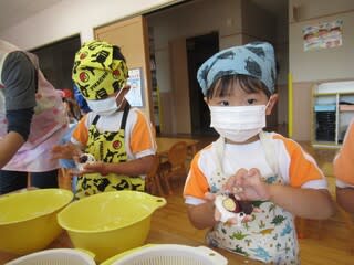おやつにみんなでいただき、秋を感じるクッキングとなりました。