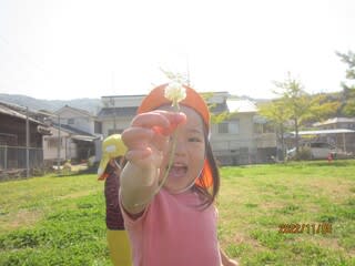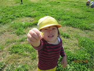 到着すると、早速シロツメクサを見つけて見せてくれました