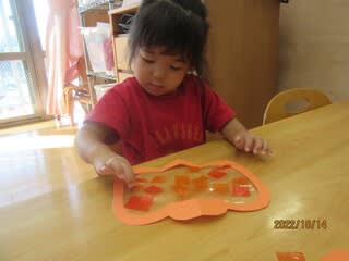 完成した制作を見て、「かぼちゃみたい♡」と突っ込みどころも満載でした(^^♪