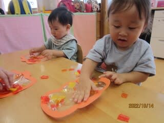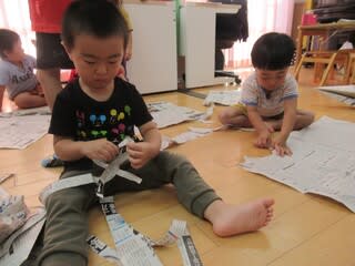 ビリビリ破ることはもちろん、小さく切ってつなげていく子、時計や指輪を作る子など、表現は様々です(^^)
