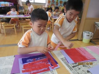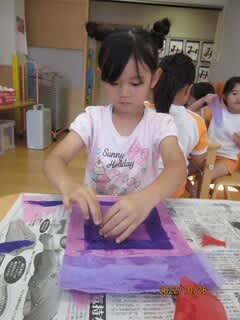色んな色が重なり合って、きれいだね~♪と言いながらの製作の時間。