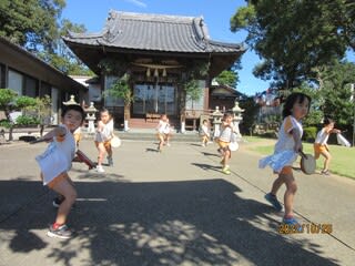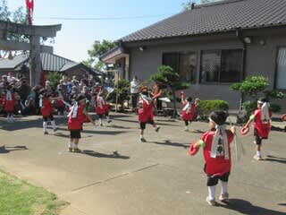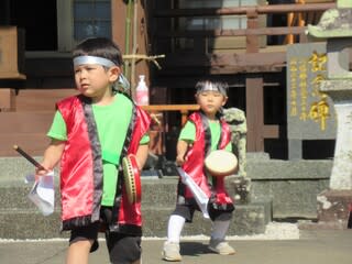 八幡神社秋の大祭が執り行われ、子どもたちは琉球太鼓を奉納しました。