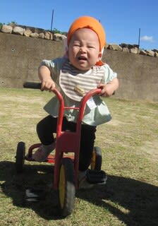 そして保育園に戻ると、お兄さんやお姉さんと一緒に再びお散歩をしたり、三輪車に乗ってみたりと満喫しました(^^♪