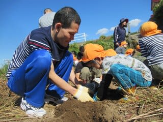 あけぼの学園の利用者さんとの交流をかねて、芋ほりを行いました。