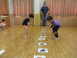 3歳児はじゃんけんを、4,5歳児は果物を通して学習しました。