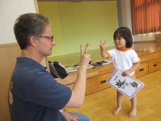 カードを見て、聞いて、発音して・・・あっという間に英語を覚える子どもたちです☆