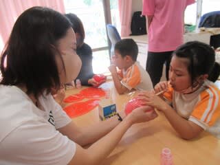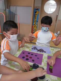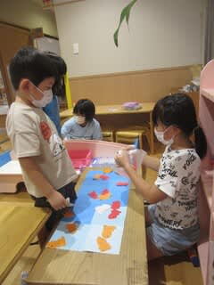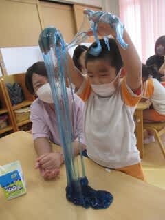 親子ふれあいの日を行い、スライムで遊びました(^^♪