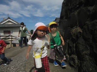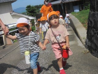 北からの心地よい風が吹く日、1・2歳児の子どもたちは園の近くの探検散歩に出かけました。