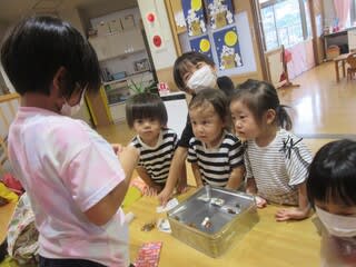 風船のように膨らましたり、長ーく伸ばしたりとそれぞれで楽しむ様子が見られました。