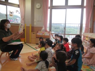 手遊び歌のあとは、紙芝居にくぎ付けの子どもたちです♪