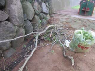強風に吹かれて木の枝や葉がたくさん落ちていました。