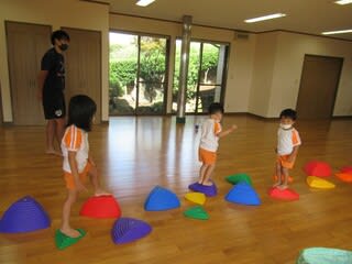 初回のこの日は、カラフルな用具を使ってチャレンジ。