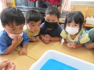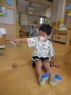 その様子を間近で見ていた3歳児さんが、「やってもいい?」と初挑戦。