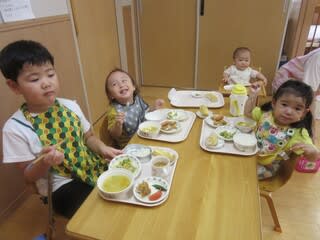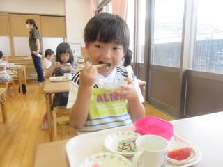 たくさん遊んだ後の給食は格別美味しくいただきました
