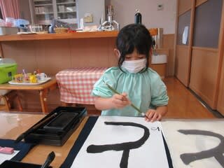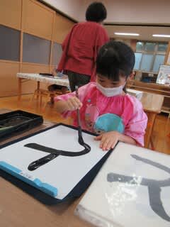 今月の習字教室は、「と」をお手本に取り組んでいます。