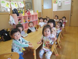 とても上手に座り、お話も聞くことができるようになった1・2歳児さんです♡