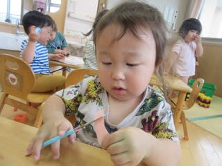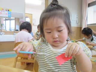 チョキチョキと言いながら、手をきらないように集中です♪
