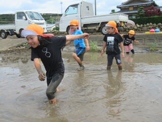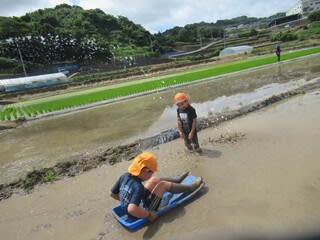 5歳児さんは、恒例の田んぼで遊ぼうへ行ってきました。