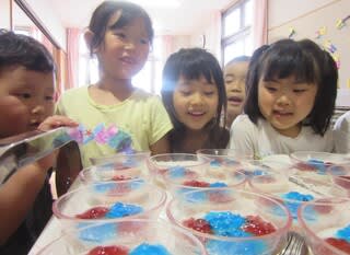 子どもたちの反応は様々。「あさがおみたい」や、「この紫はぶどう味ですか?」