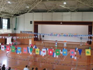 みんなで切った折り紙は運動会の万国旗に使いますよ